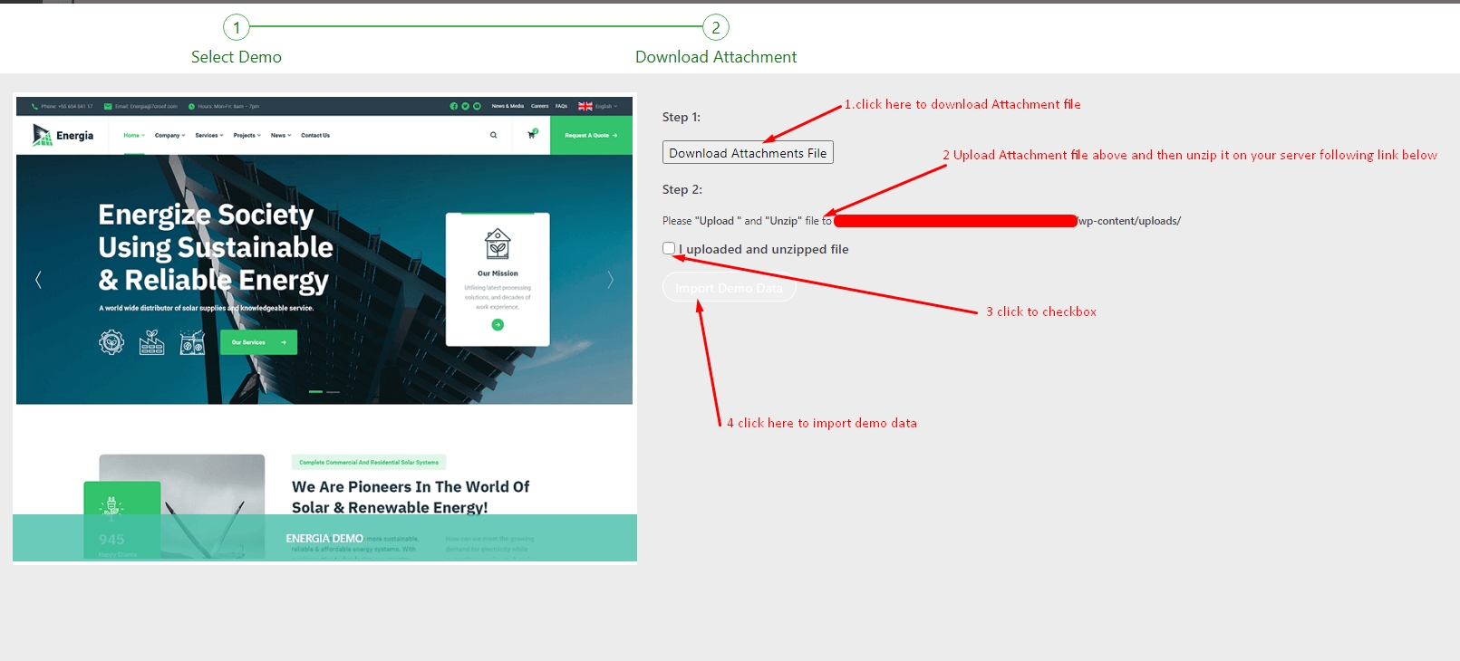 You can view some steps import the demo data manual for the Energia theme here for more detail: