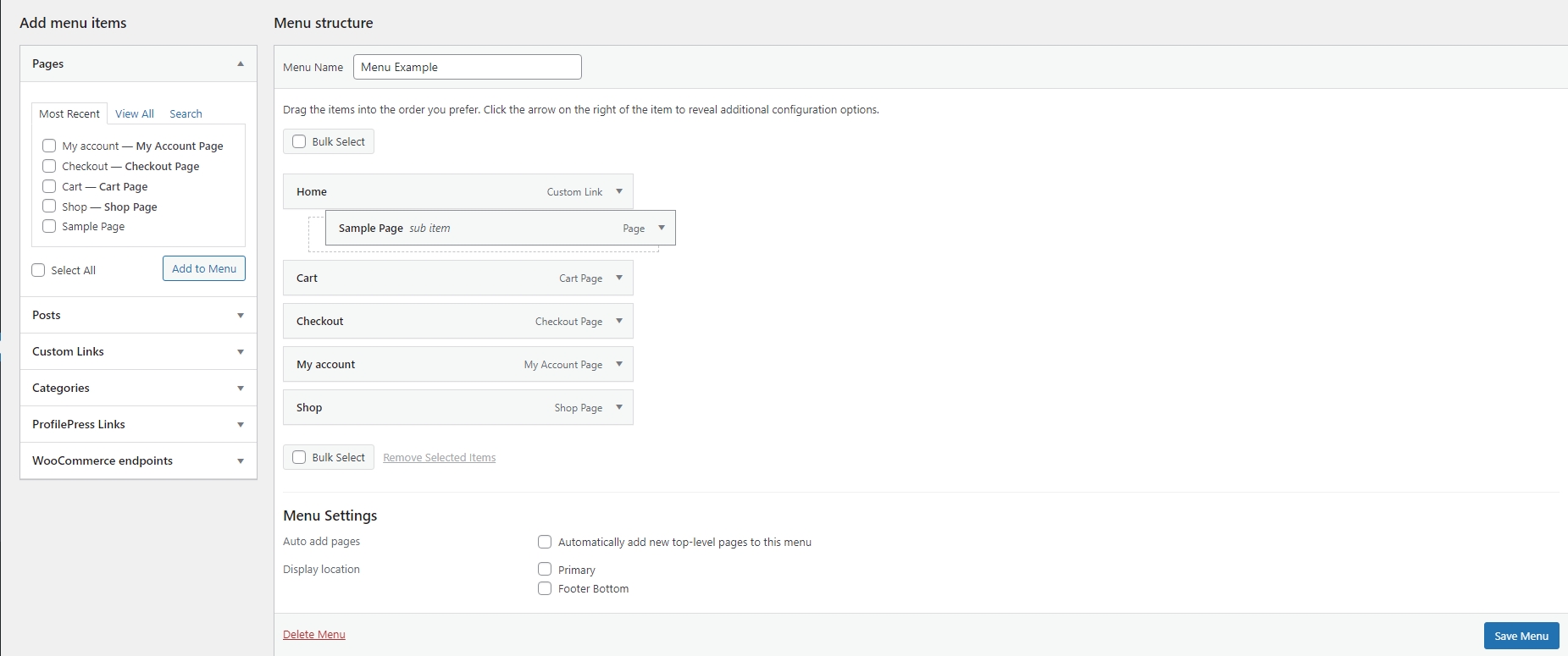 5. Click the Save Menu button in the Menu Editor to save your changes.